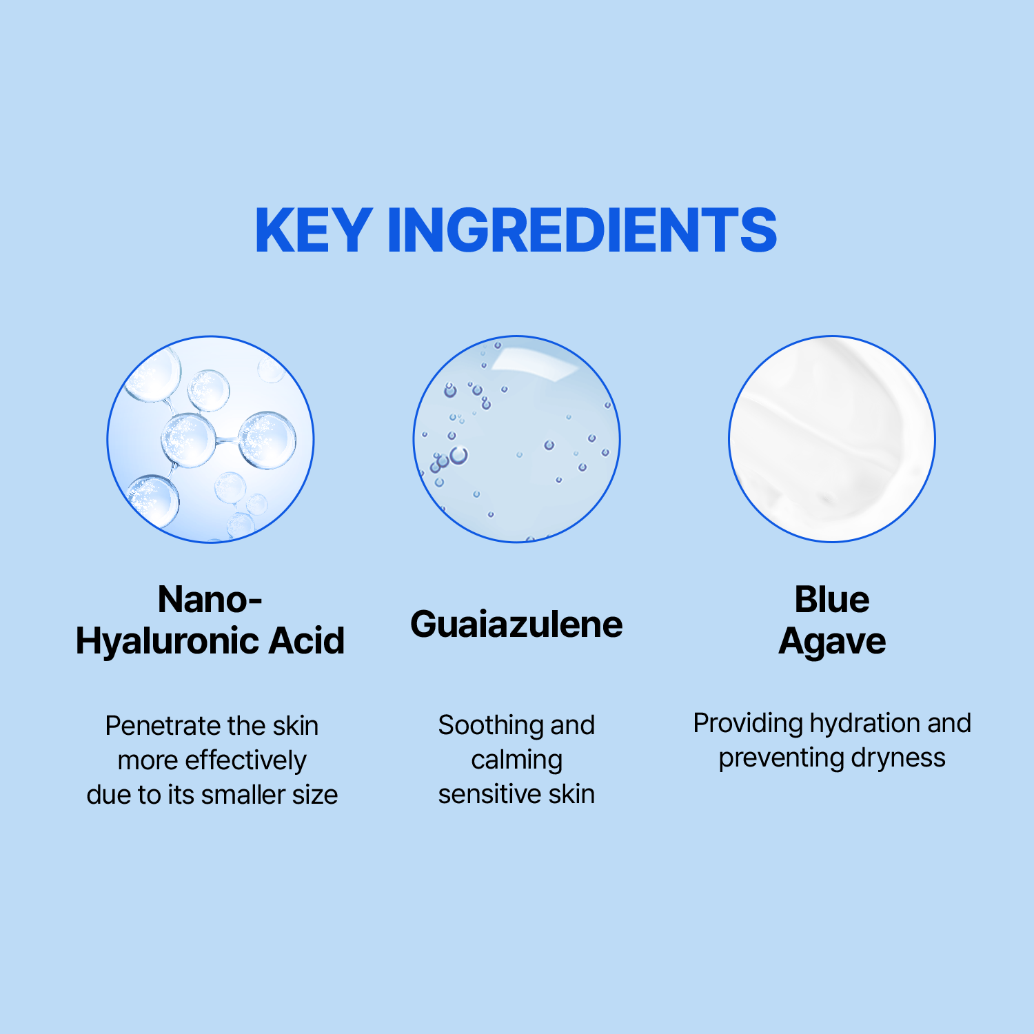 [KEY INGREDIENTS]Nano Hyaluronic Acid, Guaiazulen, Blue Agave