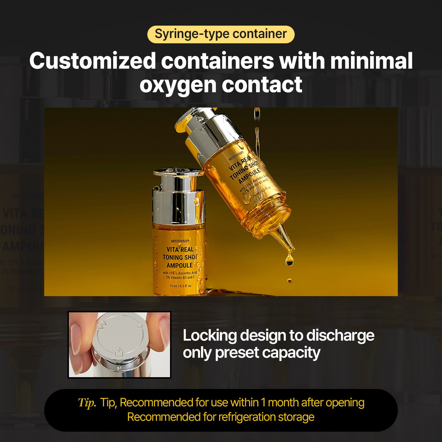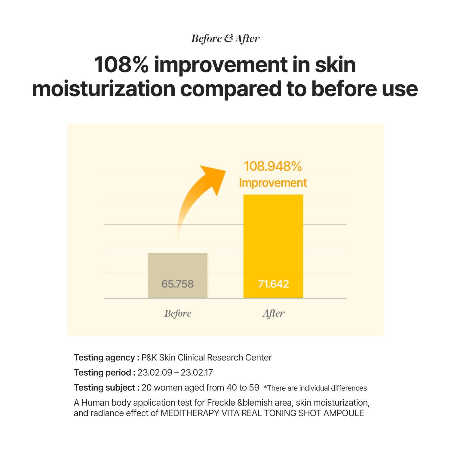 [CERTIFIED BY THE TEST]Witness transformational results in just one week by using Vita Real Toning Shot Ampoule. Wrinkles look smoother and skin looks brighter with concentrated pure Vitamin C serum. Experience a 108% improvement in dark spots and blemishes within 7 days.
